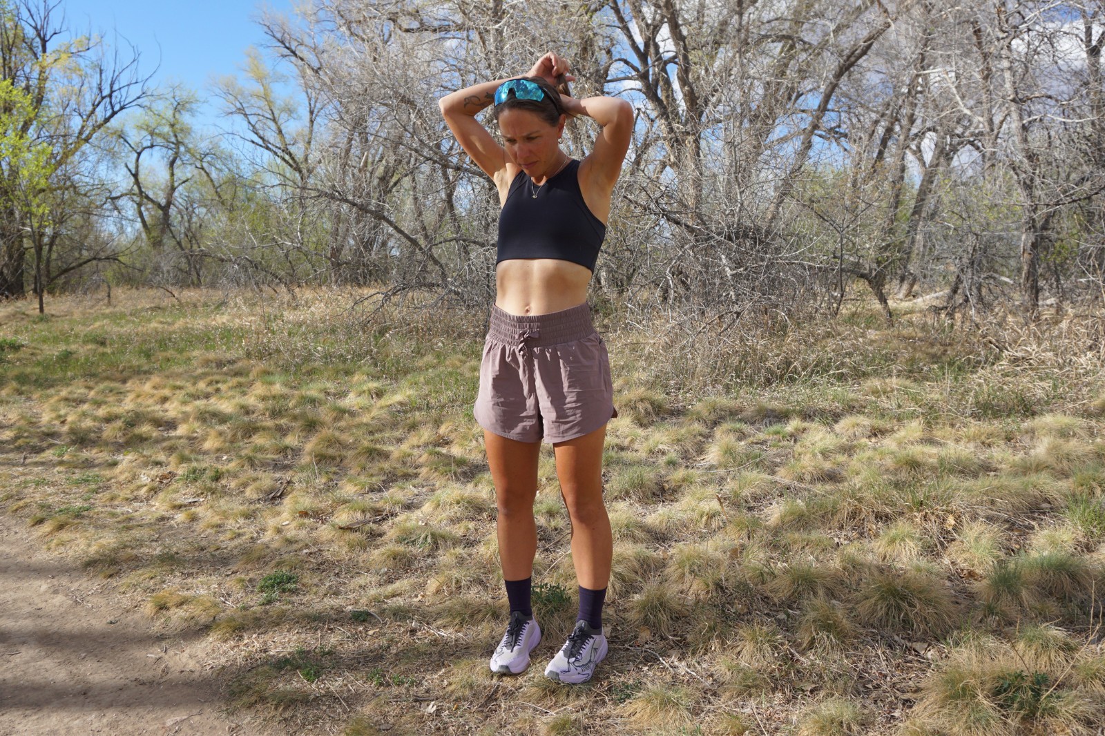 LINDSAY: I’m sure Reese will also touch on the sizing, but it seems like the shorts run on the larger side. I’m usually a small or a medium, but the small Marathon Short felt very loose after a few miles. At first, the fit felt great, but they definitely loosened up even after cinching the waist. I surely could have sized it down to an extra small. Also, if I tried to run with gels in the many, wonderful pockets, it would’ve been impossible. Hiking, though? That’s where these shorts can really shine.