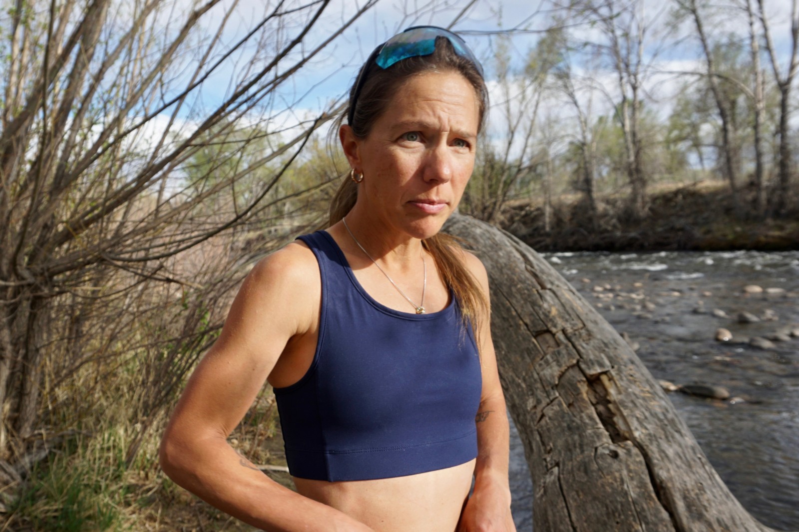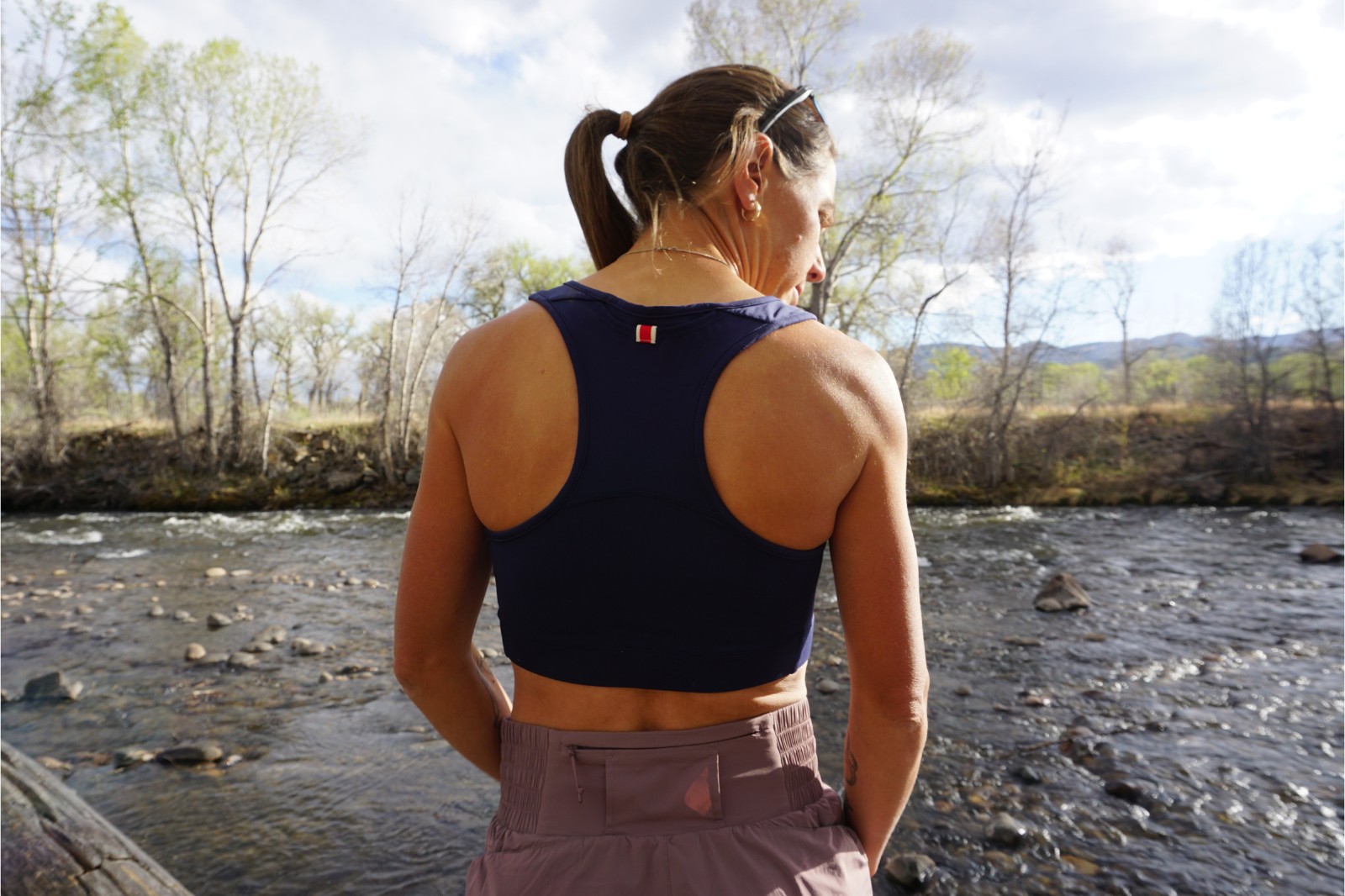 REESE: This is my second Tracksmith bra, the first one fit well in a small, but I needed to size up to a medium in the Allston bra. No, my chest didn’t get bigger. Hard to believe, right? The addition of pockets likely meant they needed a stronger band around the ribs to prevent slipping or sagging. The medium didn’t squeeze me in the way that the small did. The volume, on my end, was lacking, but the bra wasn’t loose or baggy.