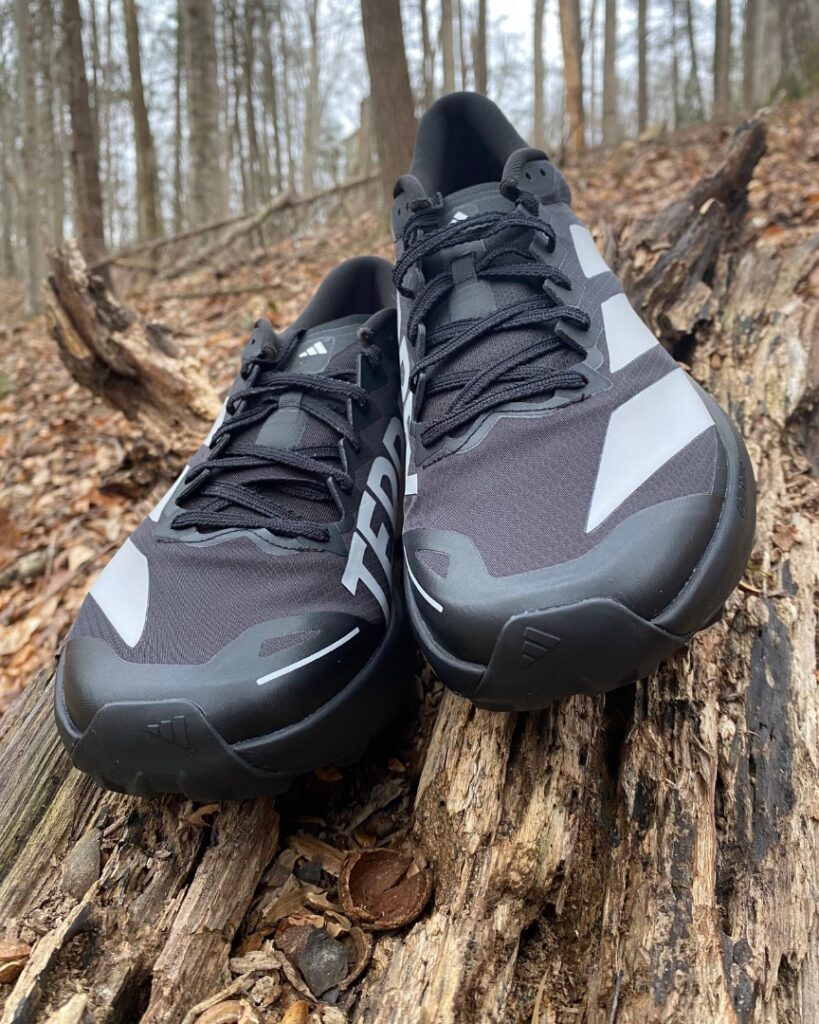 The look of the shoe is great. The black drew many people’s attention on the trail. I have some jokes about this in the next section, but it’s an eye-catching shoe. When you see the 3 stripes, you think of cool stuff like track suits, David Beckham, and old-school hip-hop. Adidas has so much cool baked in and is really coming into its own with trail shoes. If you look at the progression in style from the Soulstride to now, it’s pretty incredible. Good job, Adidas.