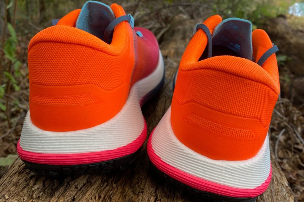 The shoe is a great choice for ultra-distance running, but at some point, I would need to consider whether it’s worth the weight. The heel cup is a bit overbuilt, although that’s only an issue when I get sloppy with my form. The shoe’s wide platform is not suitable for nimble running or single-track trails with roots/rocks. I don’t think that’s a negative, as it works great for gravel roads, even when running over clumpy dirt clogs and ruts. There’s no extra eyelet for a runner’s knot, but I had good enough security without it for moderate terrain.