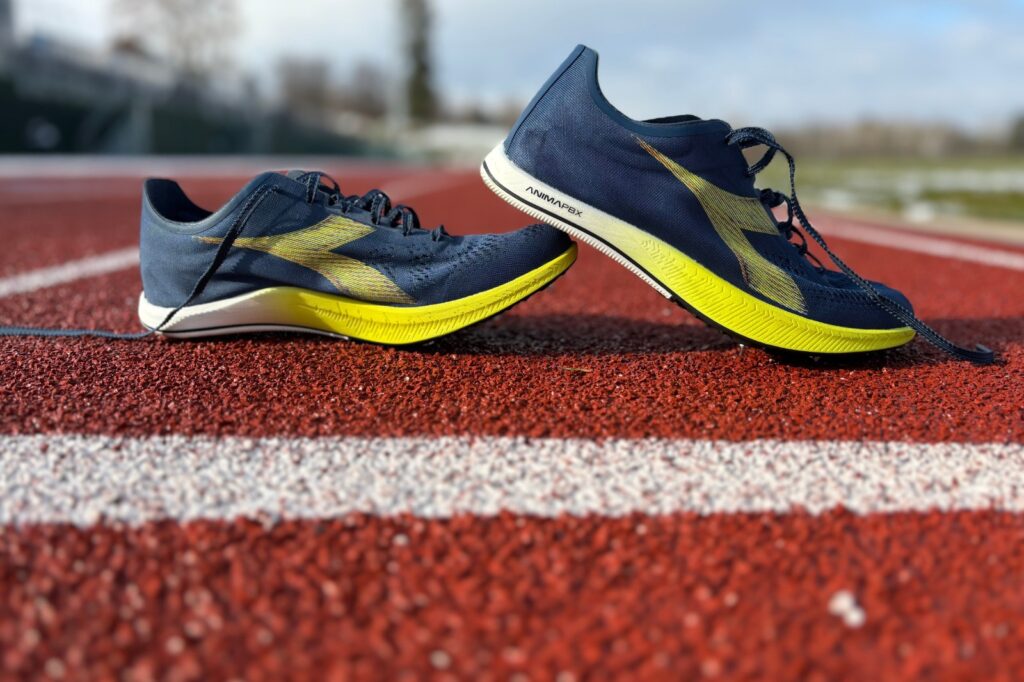 Ahem, the Mezzofondo is the brand’s first serious foray onto the high-octane oval. Weighing in at 5.7 oz, with full-length PEBA in the midsole and a carbon plate, Diadora markets the Mezzofondo as a spike for any distance, from 800m to 10k. That’s a pretty vast span, especially considering the vastly different needs of those races, so of course I’m here to put Diadora’s claim to the test. Time to take this Lambo for a ride.