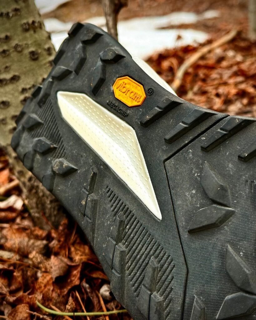 On the technical side, the Vibram outsole is a real highlight. The lug pattern has great confidence-inspiring traction on dirt, loose gravel, and even damp roots. I never felt like I was fighting for grip; instead, the shoe felt ready to bite into the trail and just go. That Vibram platform paired with the soft midsole makes for a comfortable ride.