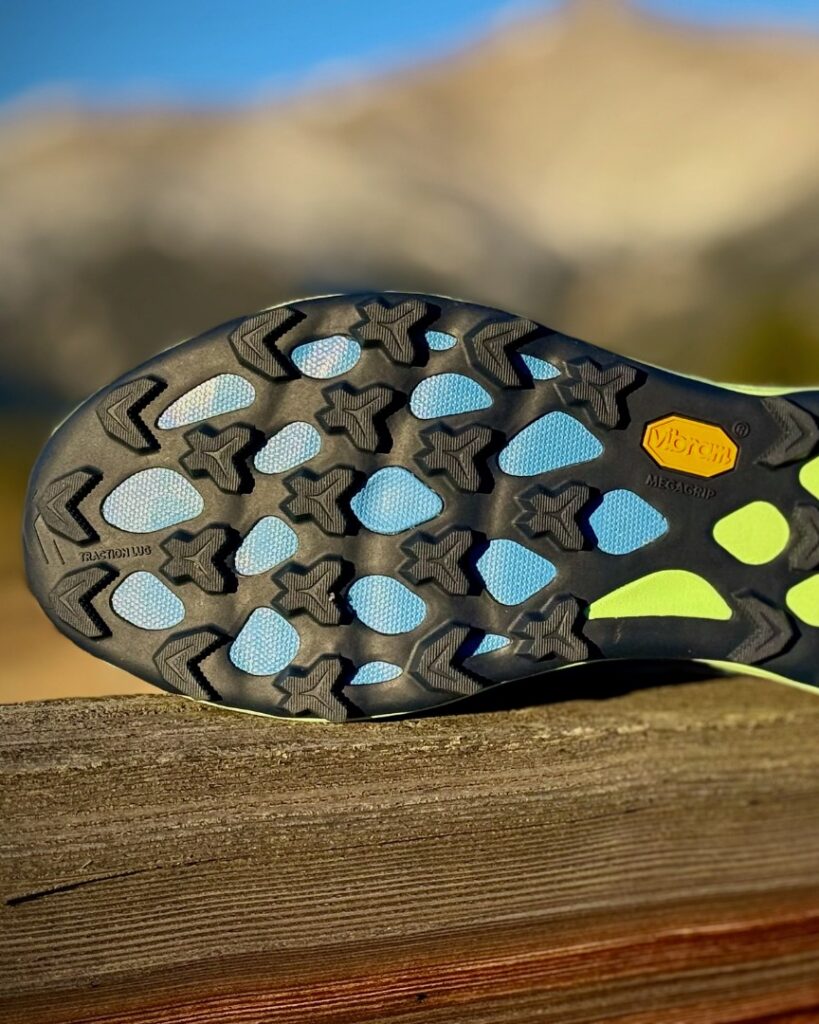 The highlight of the Merrell Agility Peak 6 is the grippiest outsole I have ever experienced. Not only does it have Vibram Megagrip, which we’ve given grade A marks for years now, but it also has some of the most aggressive 5 mm lugs. These X-shaped diggers claw into the earth like no other. For insurance, they also come equipped with the little nubbies called Vibram Traction Lugs. From soft ground to hard-packed, wet surface to dry, this outsole conquered them all.
