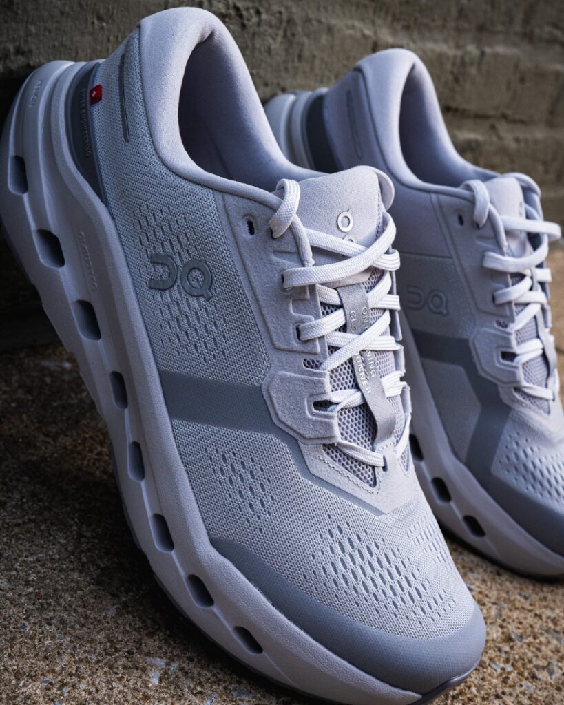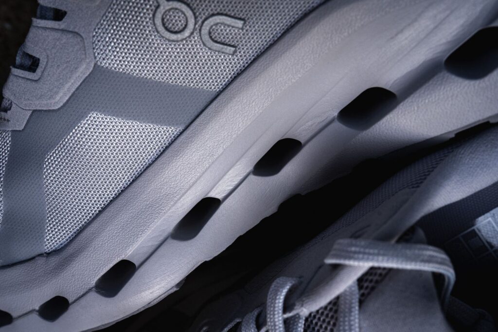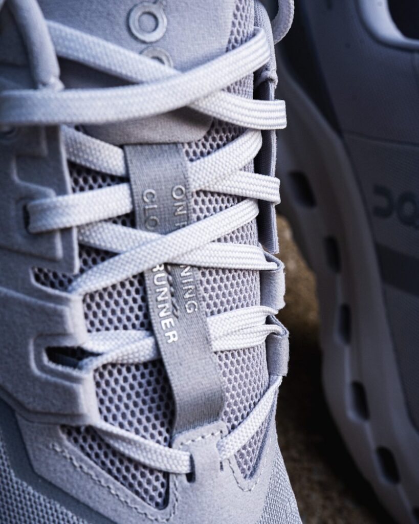 RYAN: Right, so, in almost direct contrast with Lindsay, I can’t say that I loved the overall look of the Cloudrunner 3, but I think it’s mostly due to my colorway. If I judge it purely based on the Cloud pods and the sleek upper, yes, it does look pretty good. The plastic heel clip is subtle, and I like the pop of the red Swiss flag against the otherwise grayness.